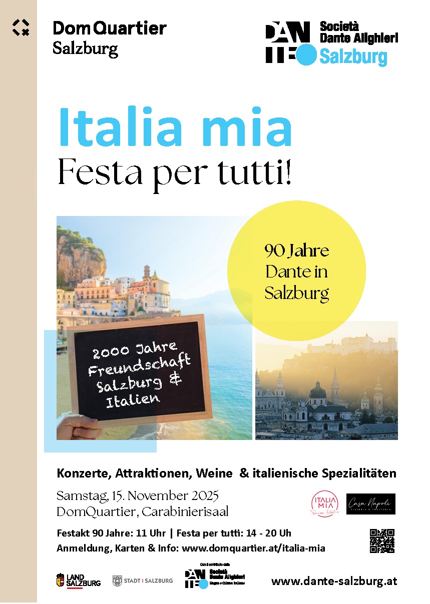 • Festreden: Amtsträger*innen von Land und Stadt Salzburg, Italien und der Dante-Zentrale